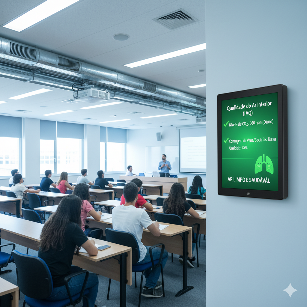 A alta concentração de pessoas em salas de aula e auditórios torna esses ambientes propícios à rápida disseminação de patógenos, resultando em um elevado índice de faltas de alunos e professores por doenças respiratórias.